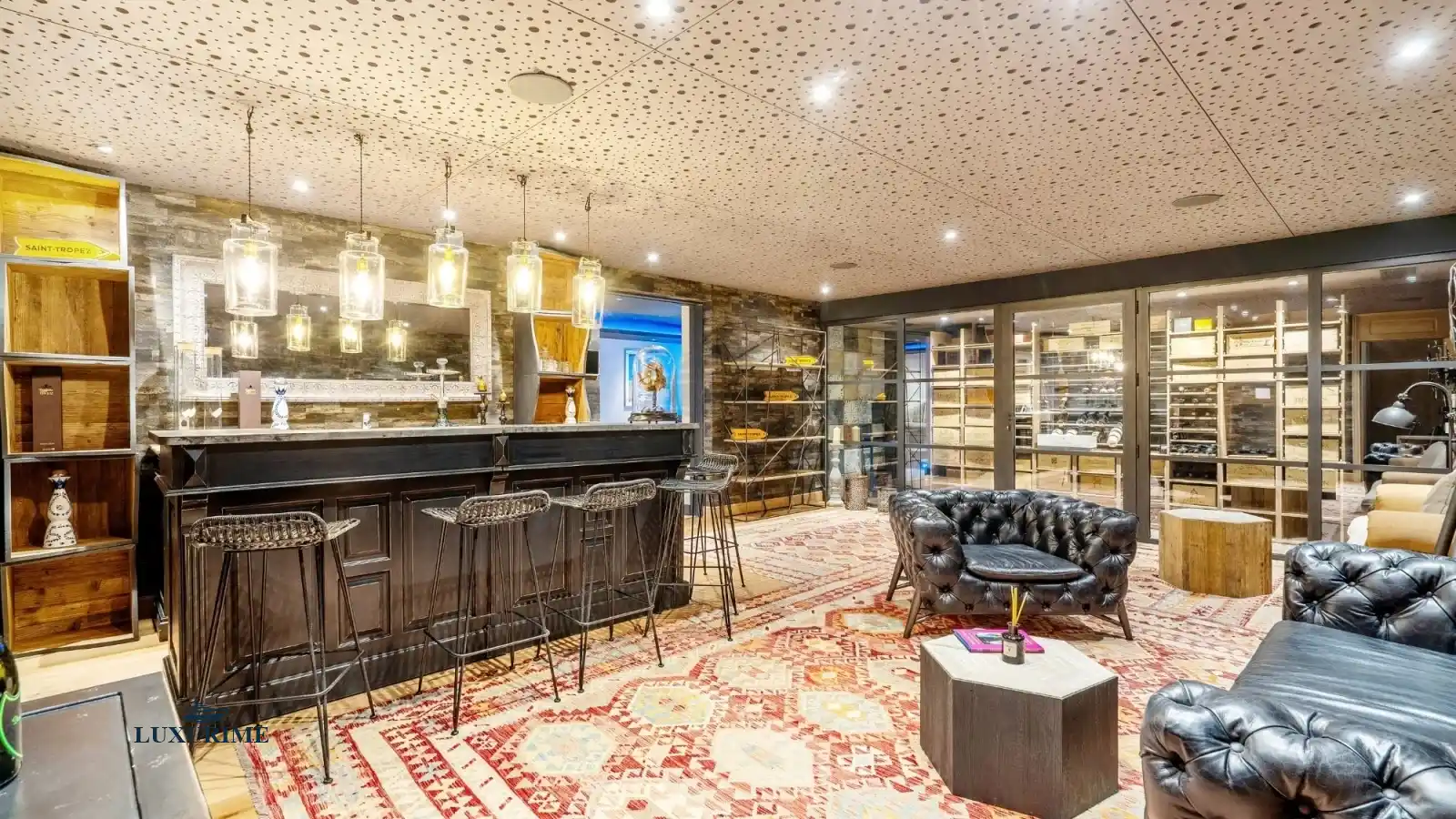 • Entertainment & Leisure: Enjoy a cinematic experience in the private home cinema, challenge your guests to a game of pétanque on your own court, or select a fine vintage from the impressive wine cellar. A secure garage is also available.