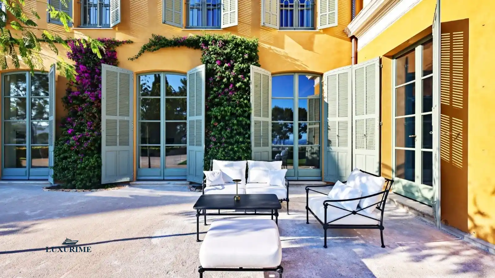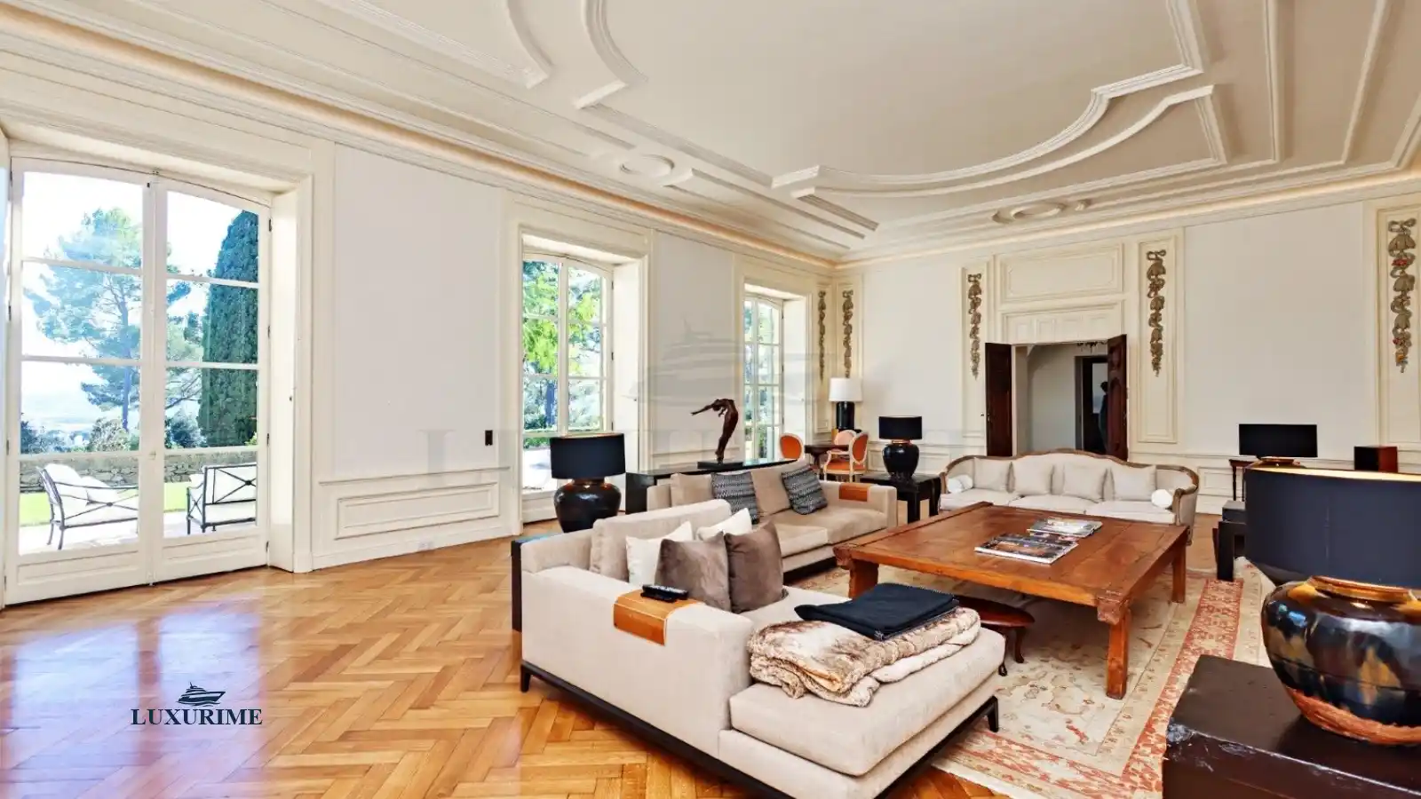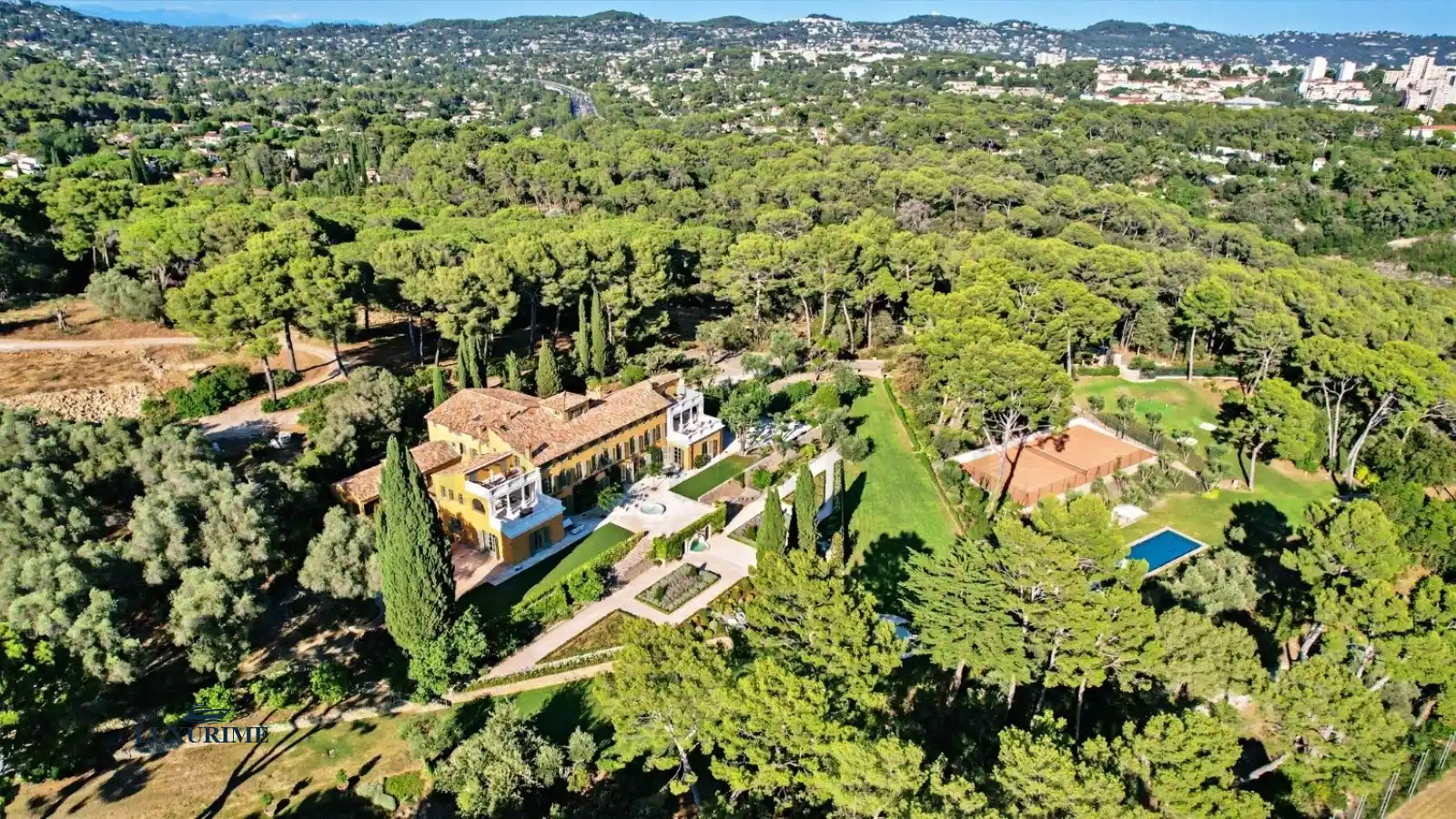 The expansive grounds create a private haven, blending French sophistication with Mediterranean charm.