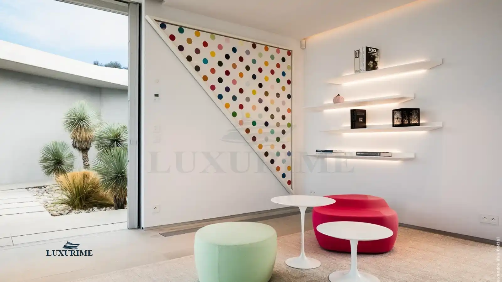 Every corner of the villa showcases designer furniture, curated pop-art collections, and a light-filled aesthetic that exudes effortless sophistication.