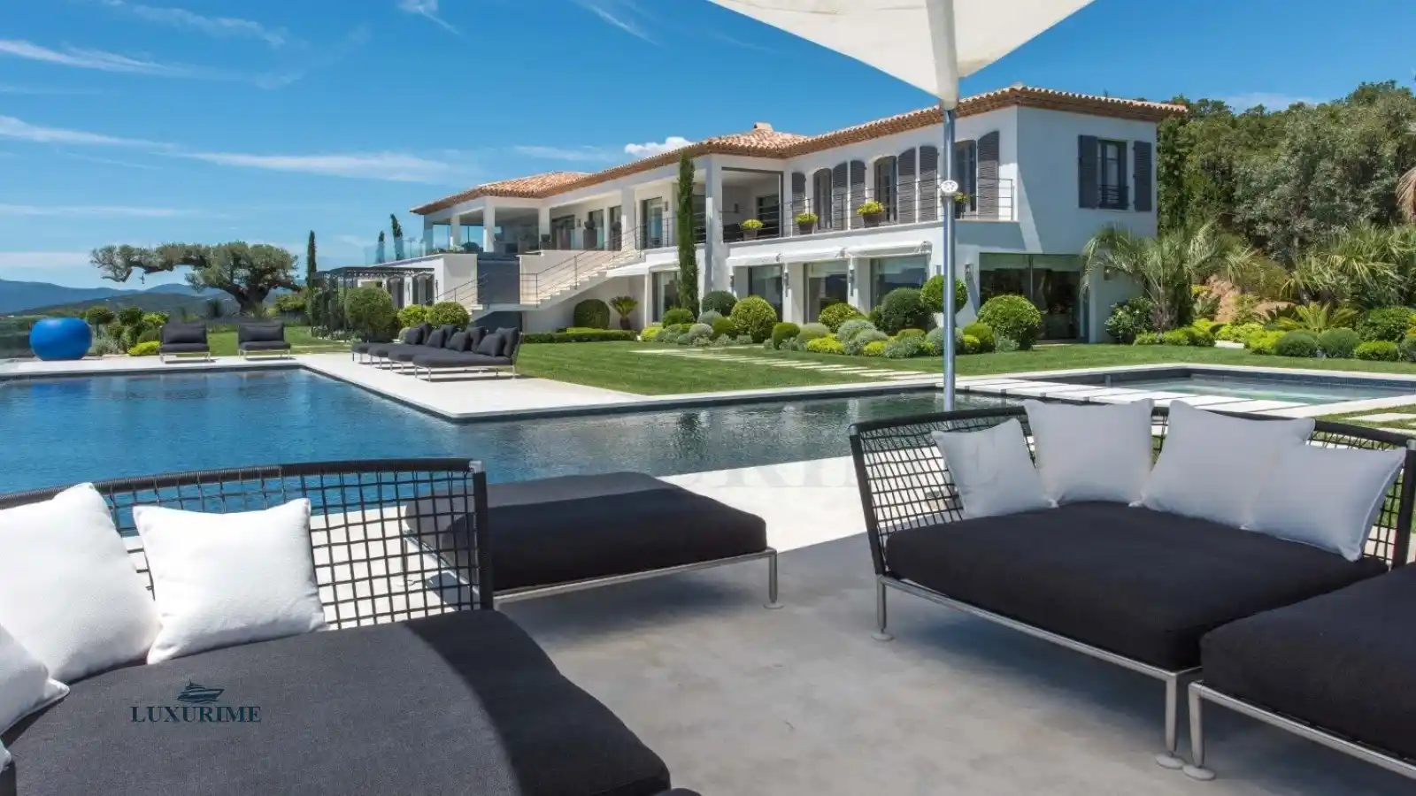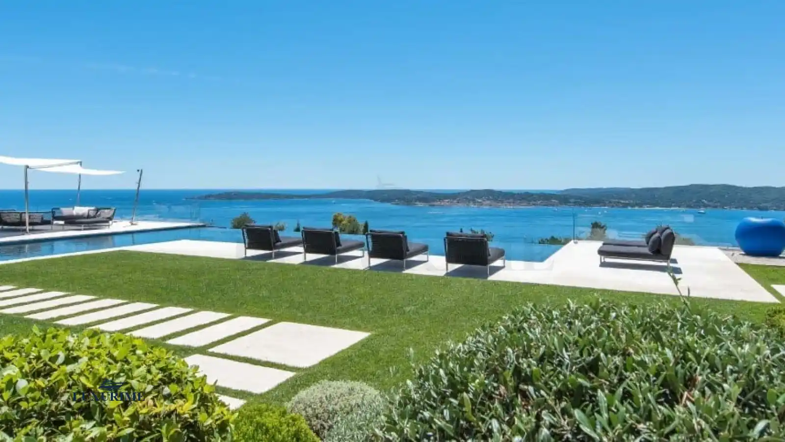 Perched in the exclusive heights of Grimaud within a secured domain, Villa Nuvola stands as a crowning jewel in the prestigious portfolio of Luxurime Yacht Charter. This architectural masterpiece, designed by its renowned architect owner, offers an unparalleled level of luxury, privacy, and breathtaking 180-degree vistas of the Gulf of Saint-Tropez, the Massif des Maures, Sainte-Maxime, and the iconic village of Saint-Tropez itself. Accessible by private road or its own private helipad, your arrival sets the tone for an extraordinary stay.