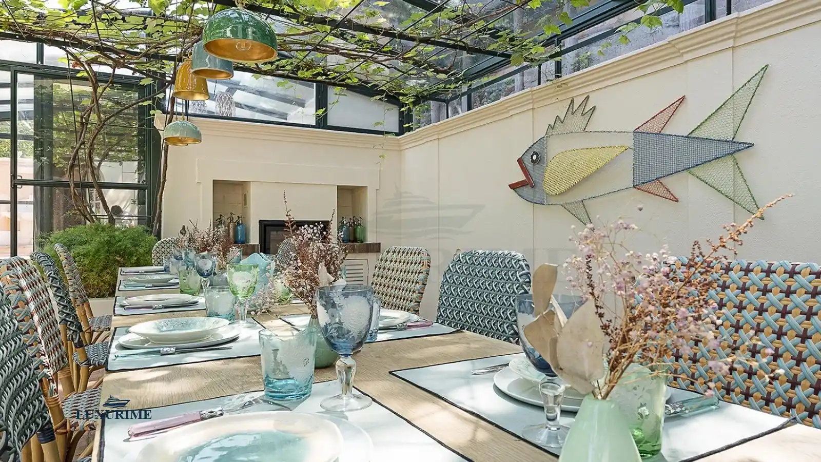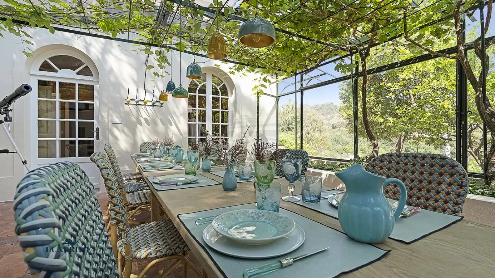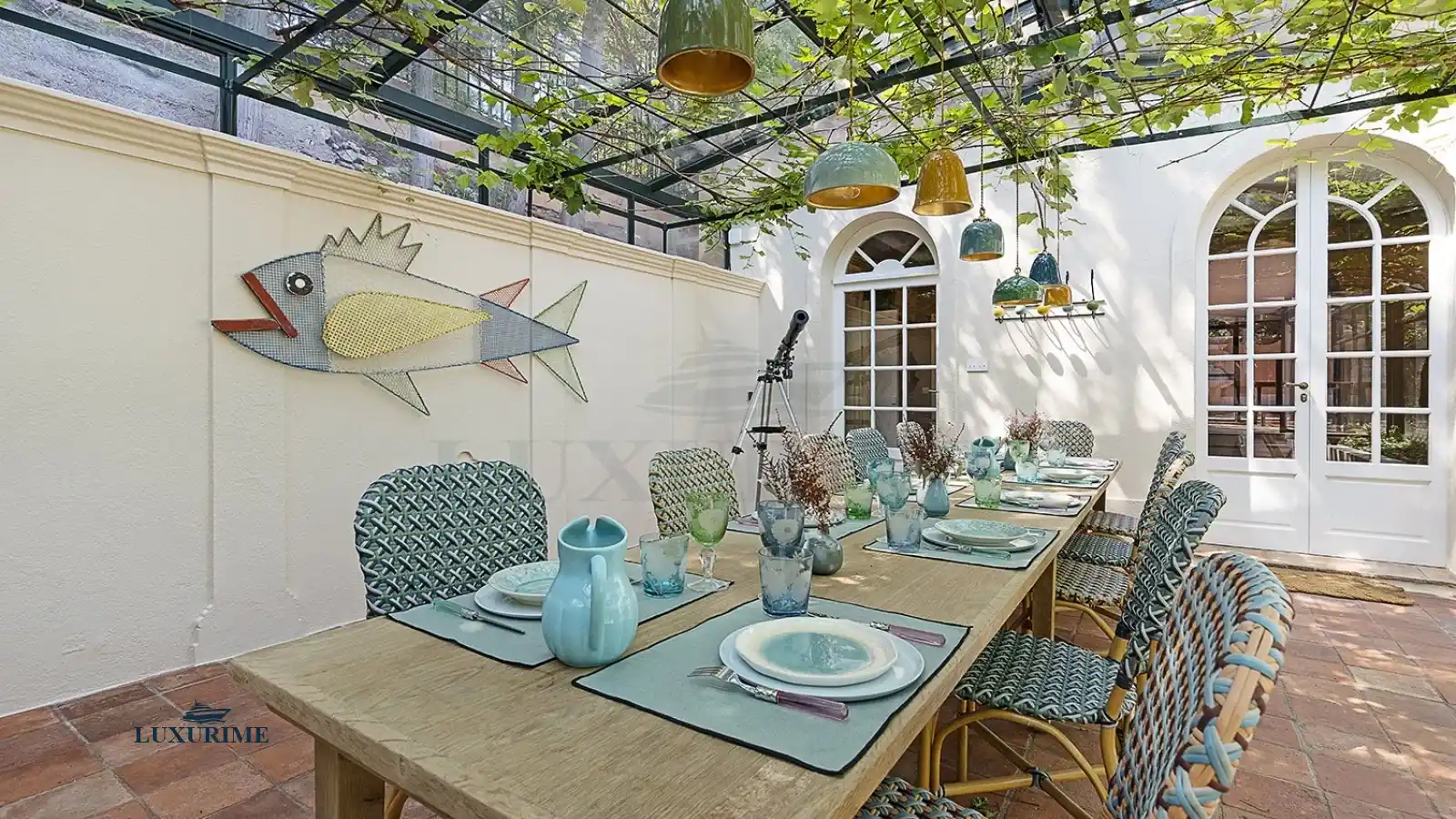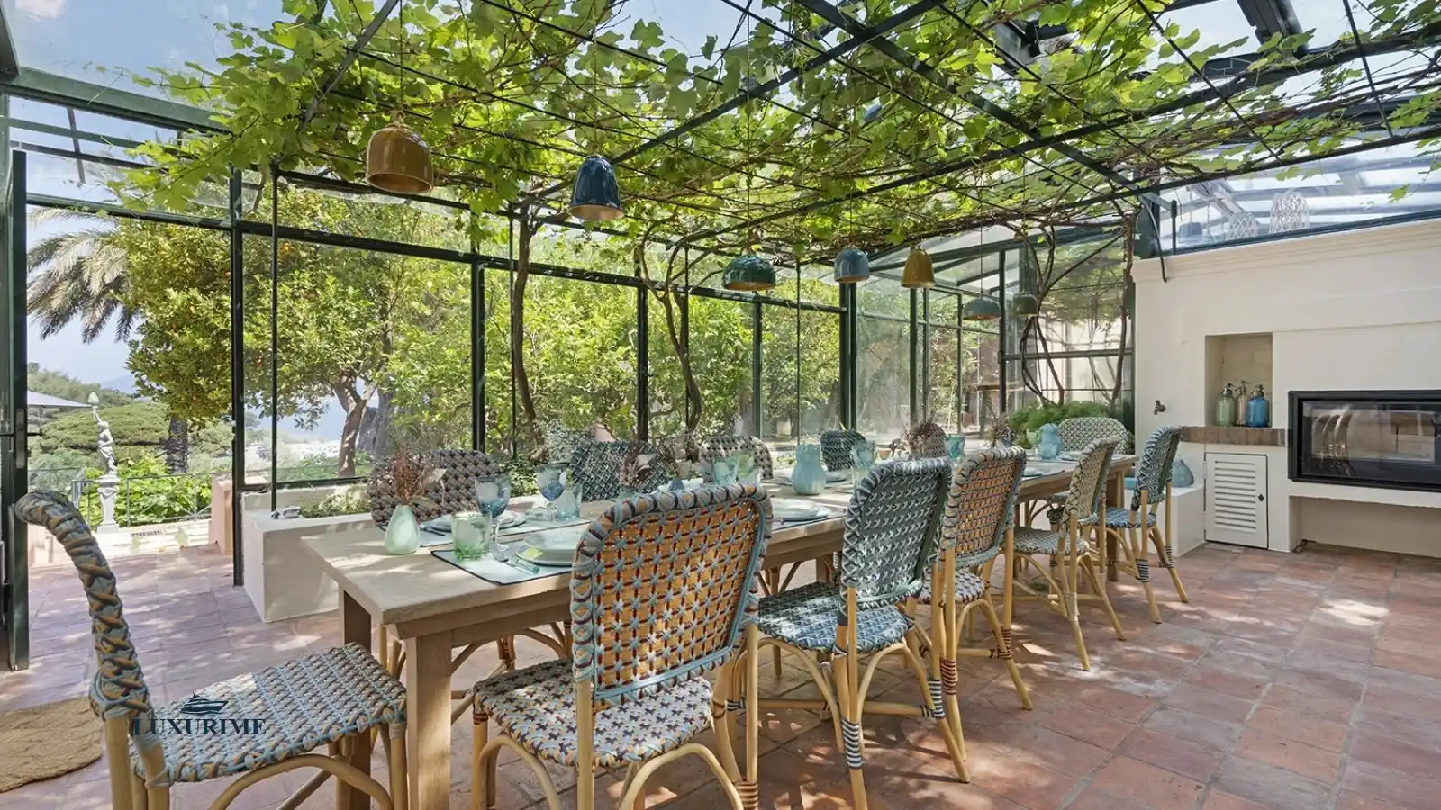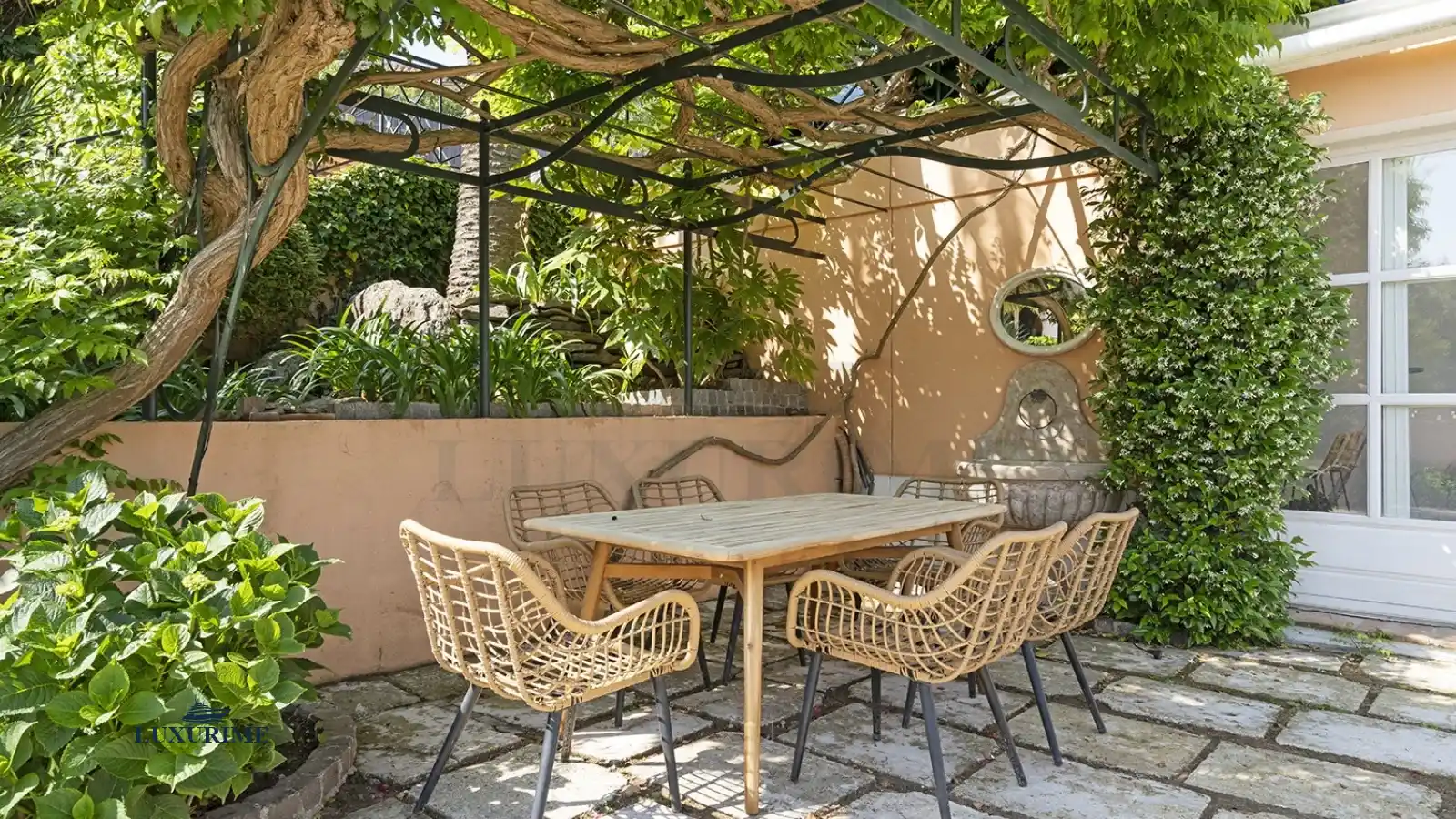 Wisteria-clad arbours provide shaded dining spaces, jasmine perfumes the air at dawn, and wrought-iron furnishings are complemented by rattan tables for al fresco gatherings. Every detail evokes the dolce vita, offering an enchanting balance of elegance and simplicity.