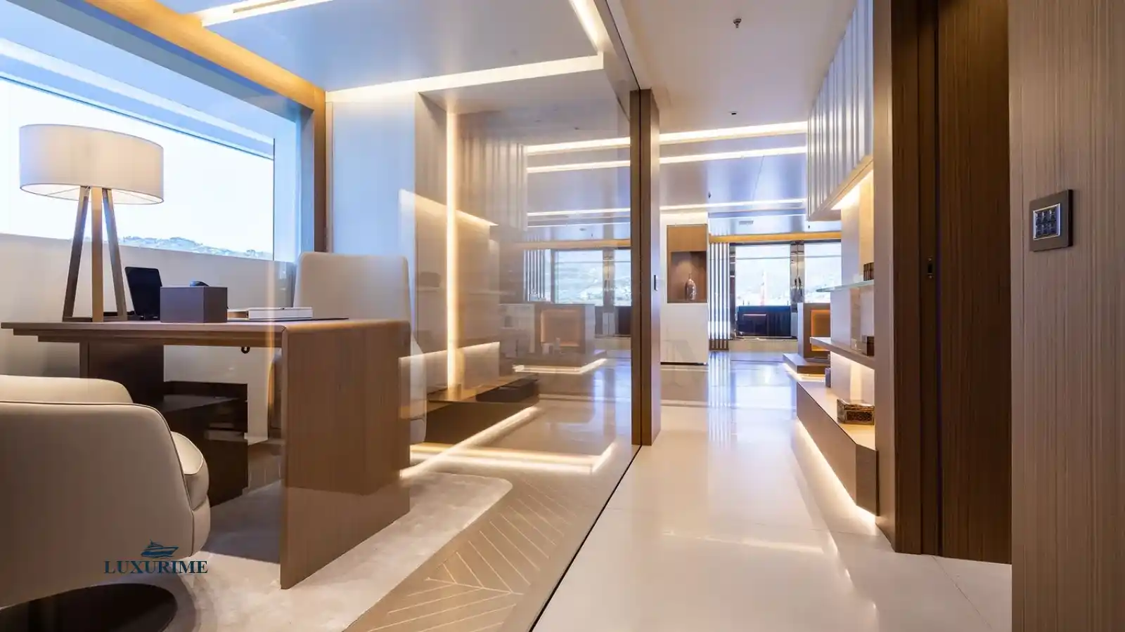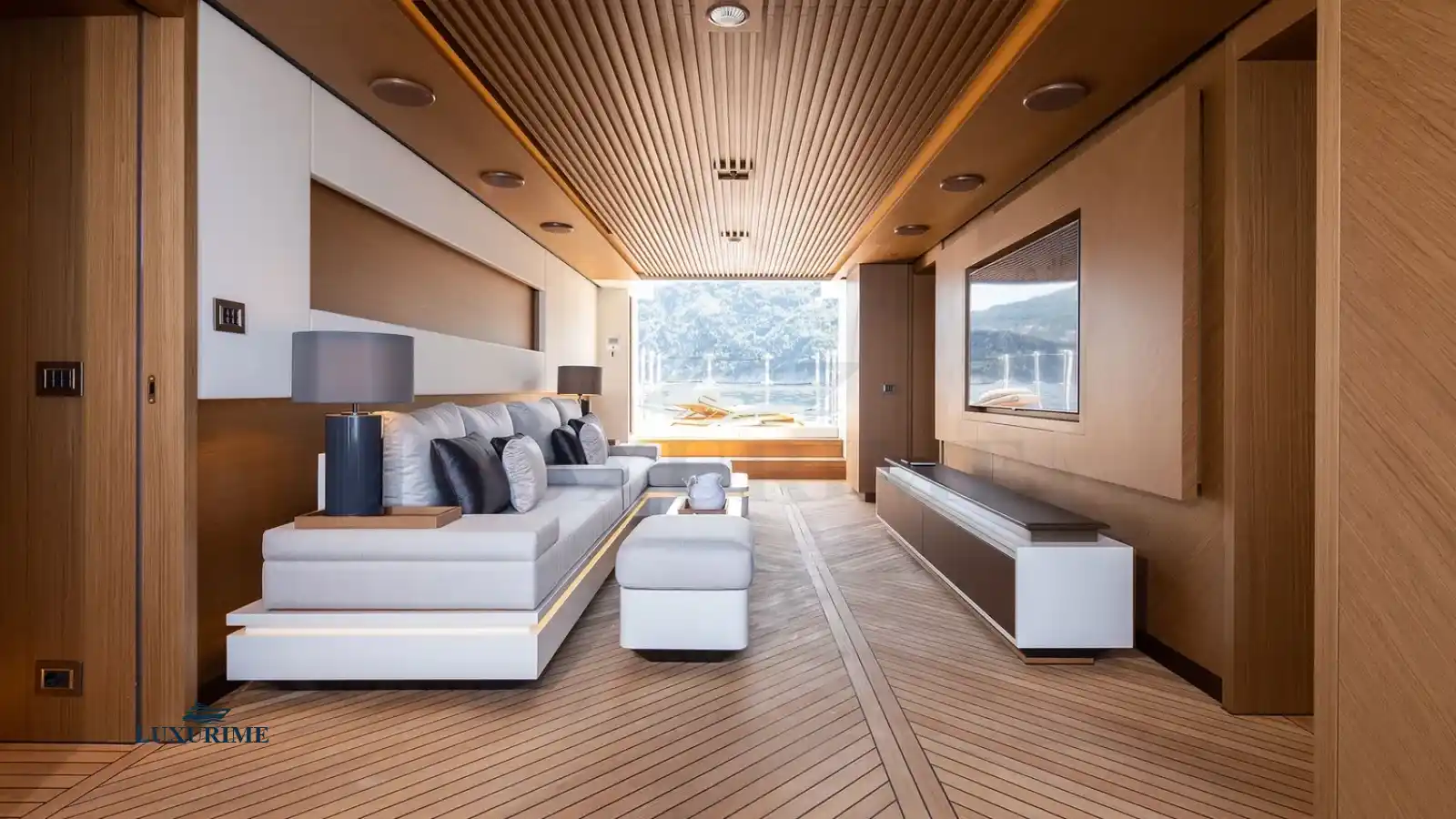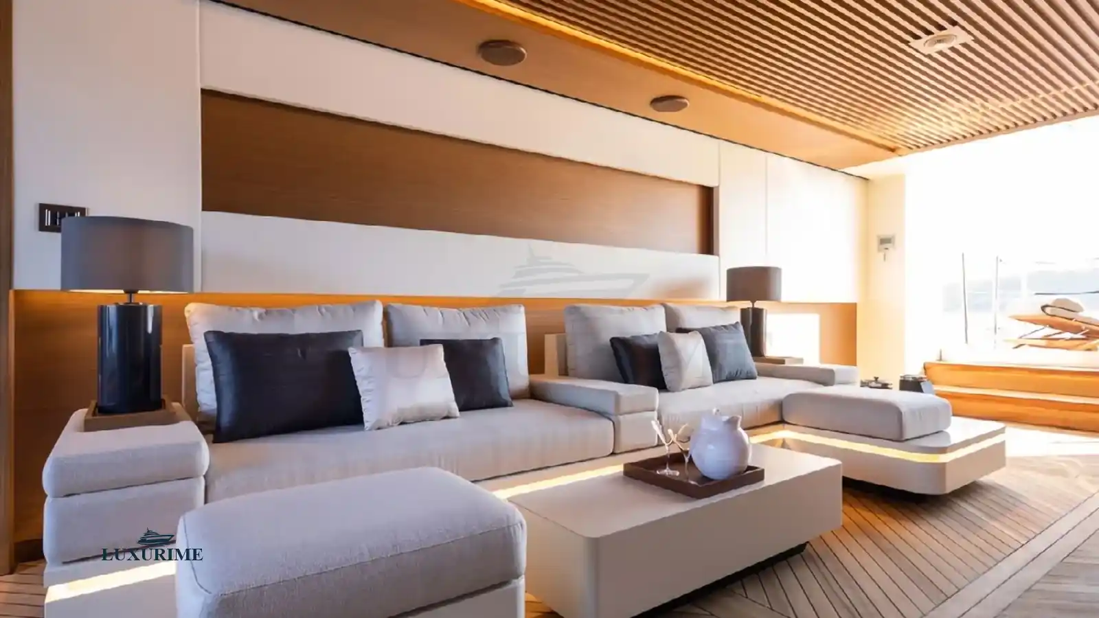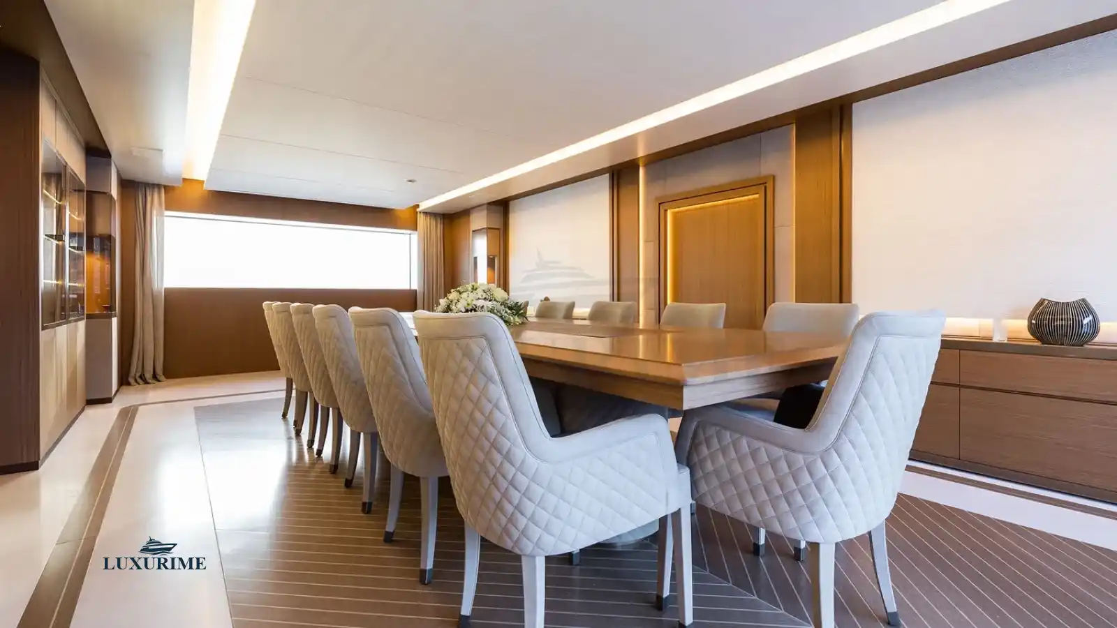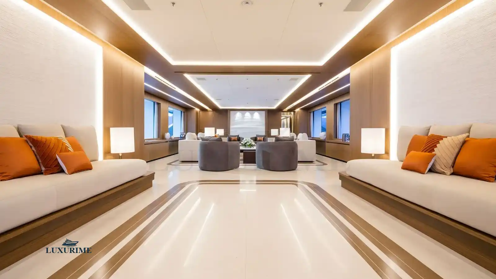 The yacht’s interior blends contemporary elegance with timeless sophistication, featuring: