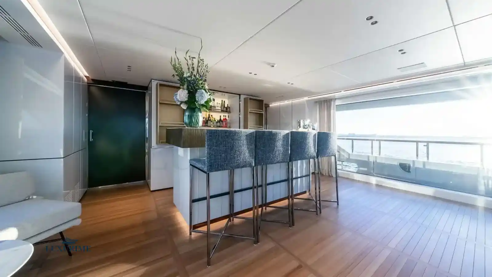 ALPHA WAVES is crewed by 9 highly trained professionals, including a private chef, deckhands, and a concierge team, ensuring every need is met with white-glove service.