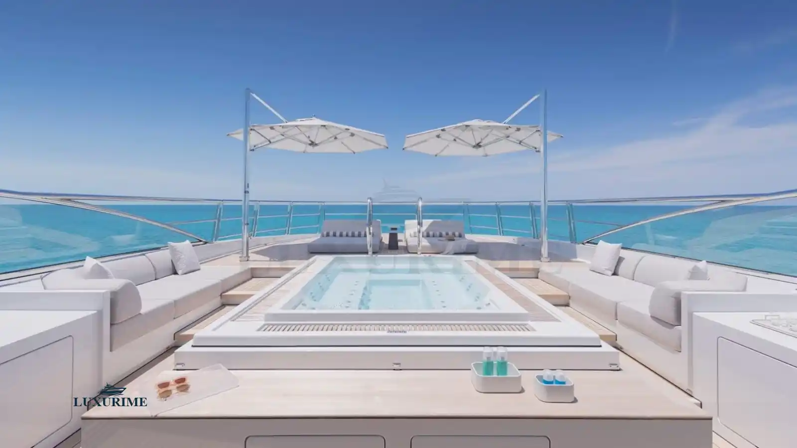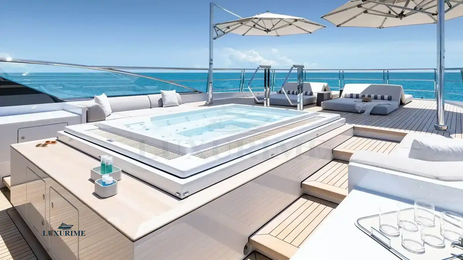 • Spacious sun deck featuring a jacuzzi, sunpads, and al fresco dining