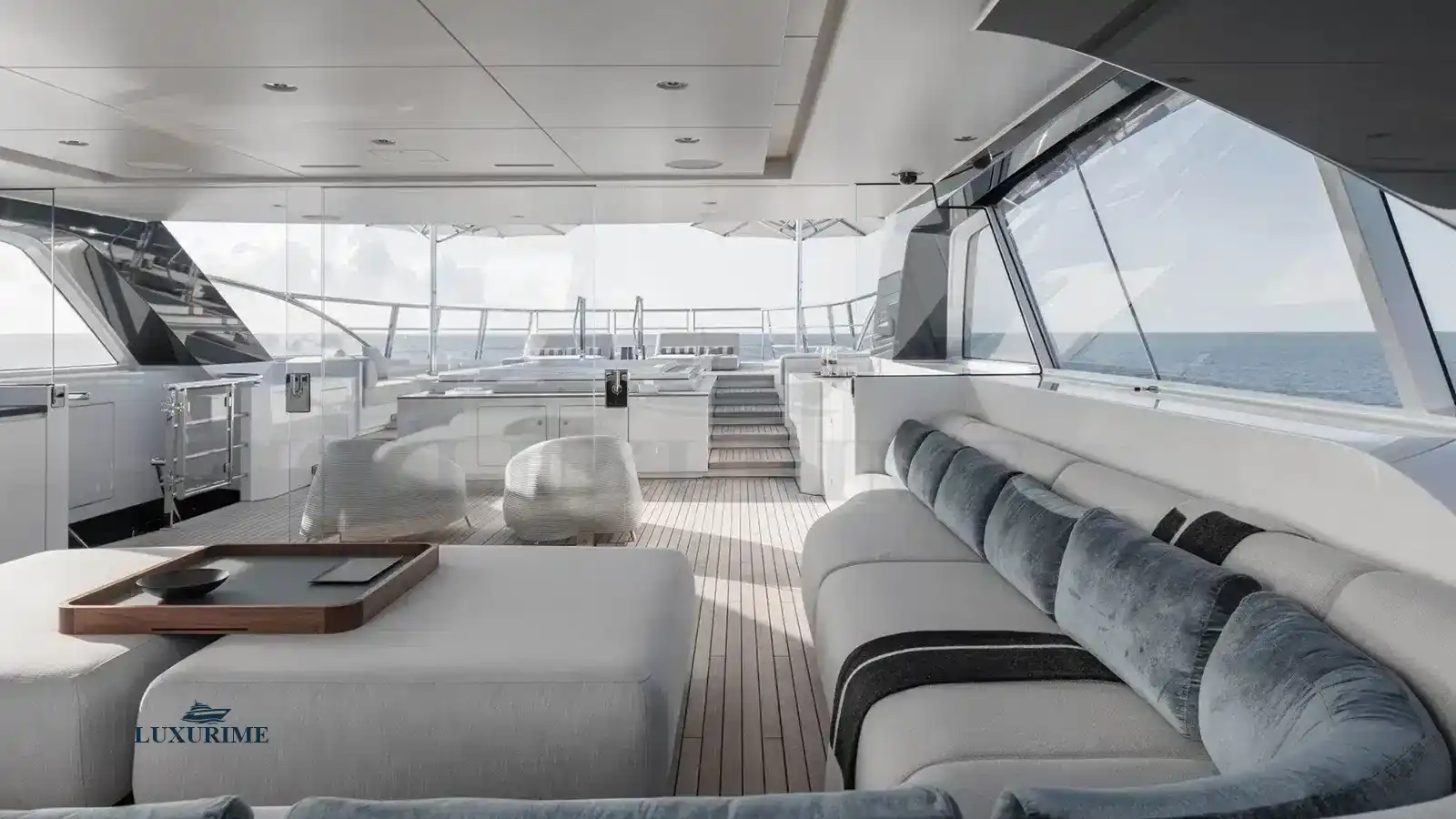 • Expansive main salon with lounge, dining, and bar areas