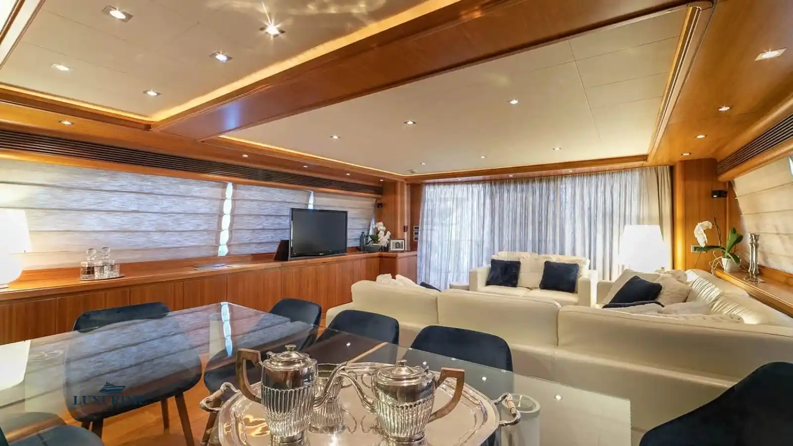 Powered by twin MTU 2400 HP engines, ETHNA cruises effortlessly at 18 knots (max speed 24 knots), ensuring swift and smooth journeys between glamorous destinations. With a 2018 refit, this yacht combines modern amenities with timeless sophistication.