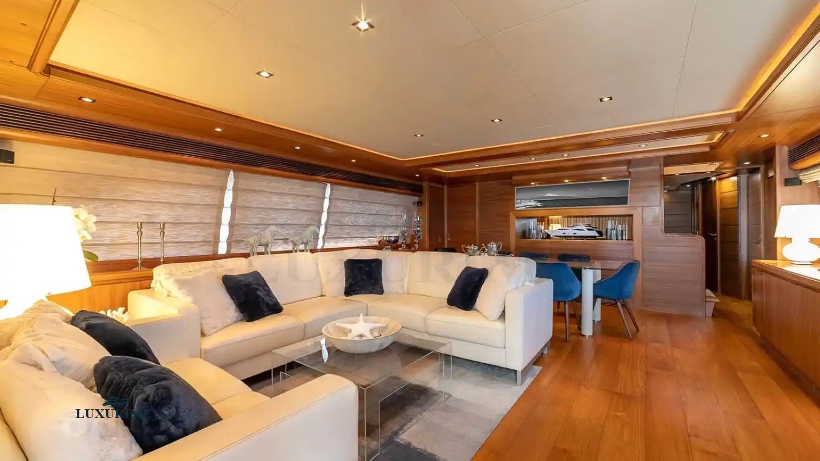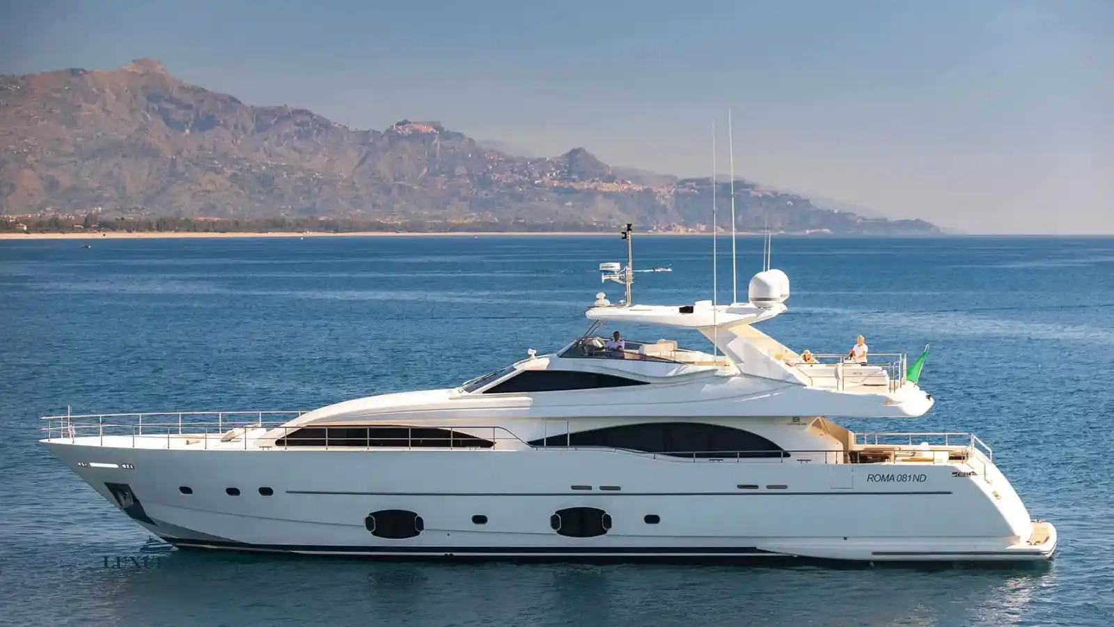Experience the perfect fusion of elegance, performance, and comfort aboard ETHNA, a stunning 30-meter Ferretti 97 motor yacht, available for charter with Luxurime Yacht Charter on the French Riviera. Anchored in the prestigious port of Cannes, this meticulously maintained yacht features stabilizers for smooth sailing, ensuring maximum comfort as you explore the breathtaking coastline of the Côte d’Azur.