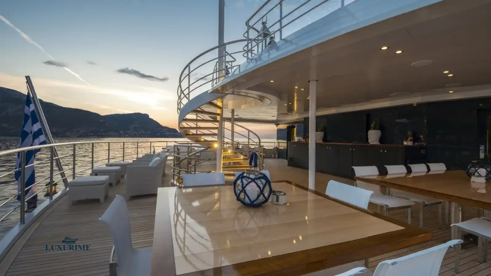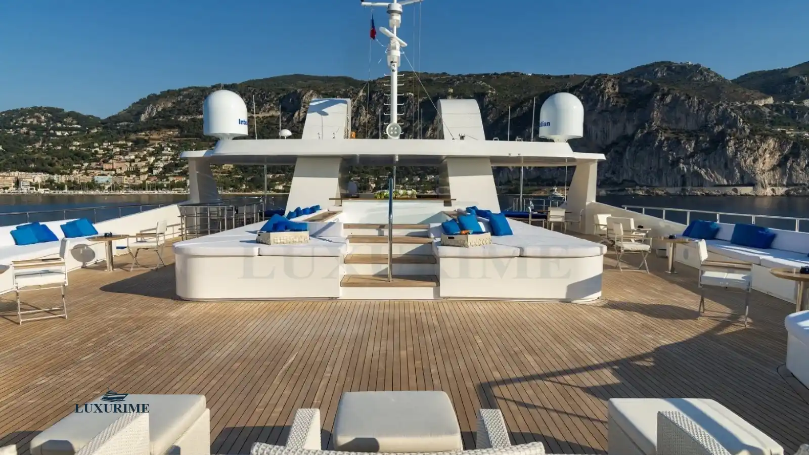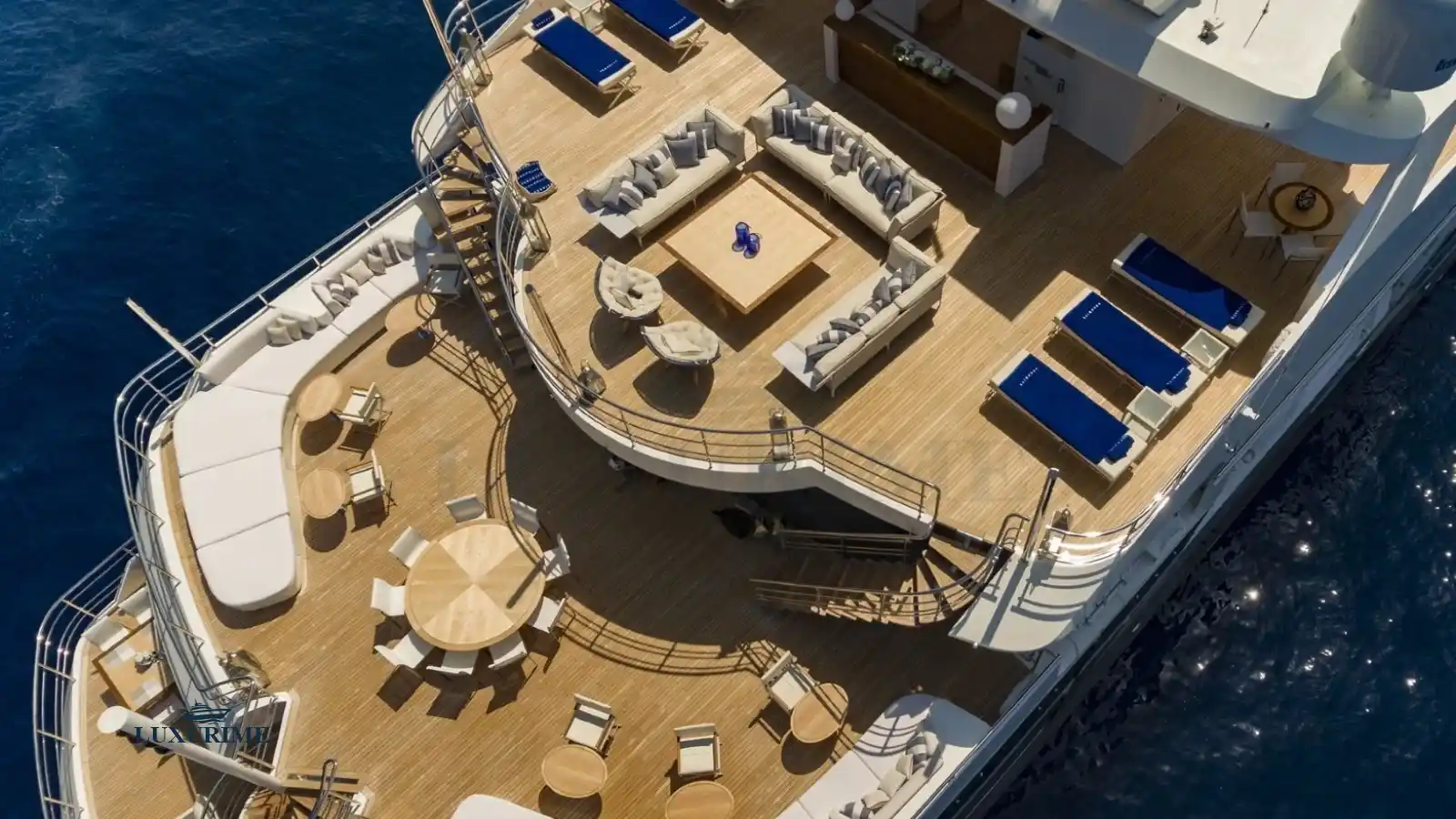 • Expansive sun deck with loungers, Jacuzzi (optional), and shaded dining area.