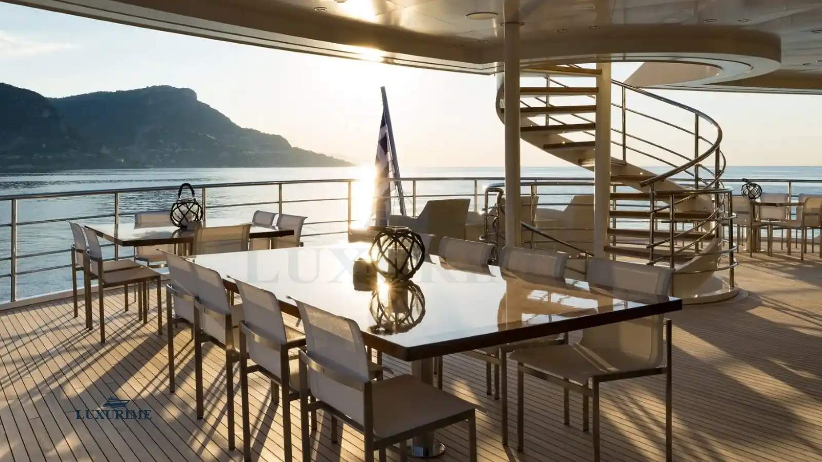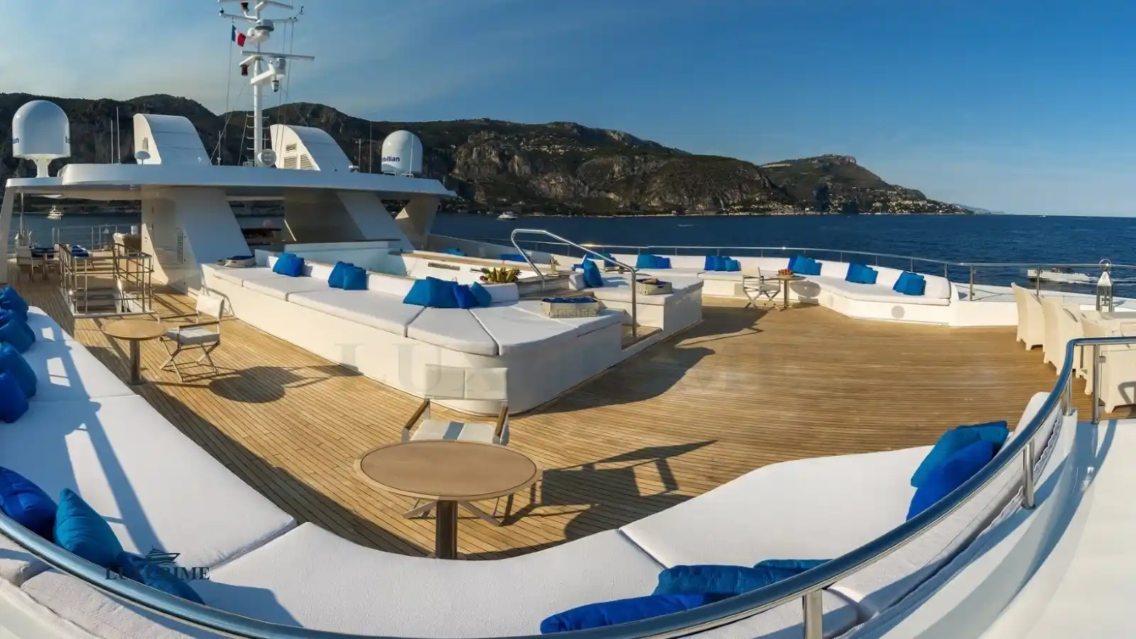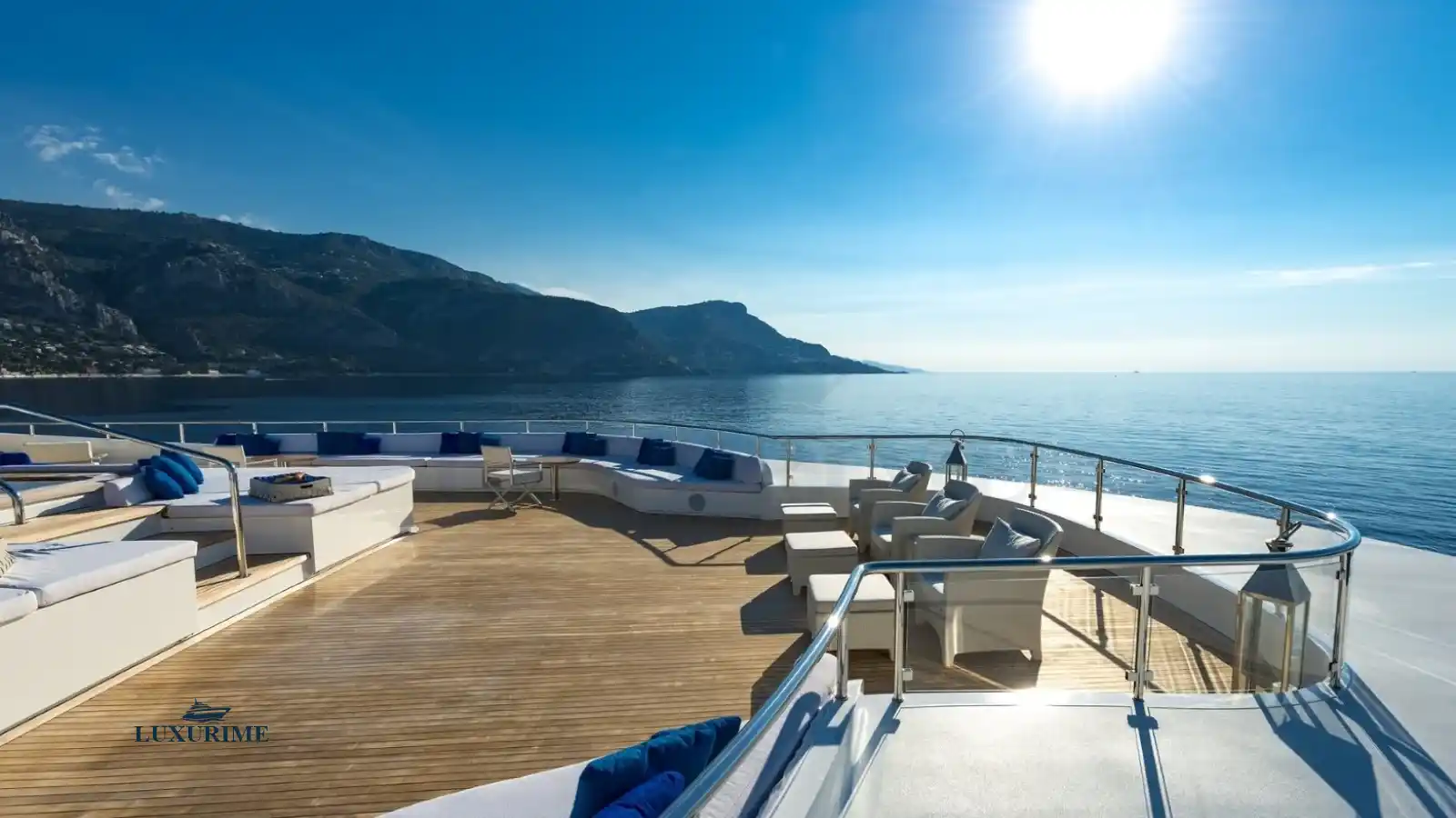 • Expansive sun deck with loungers, Jacuzzi (optional), and shaded dining area.