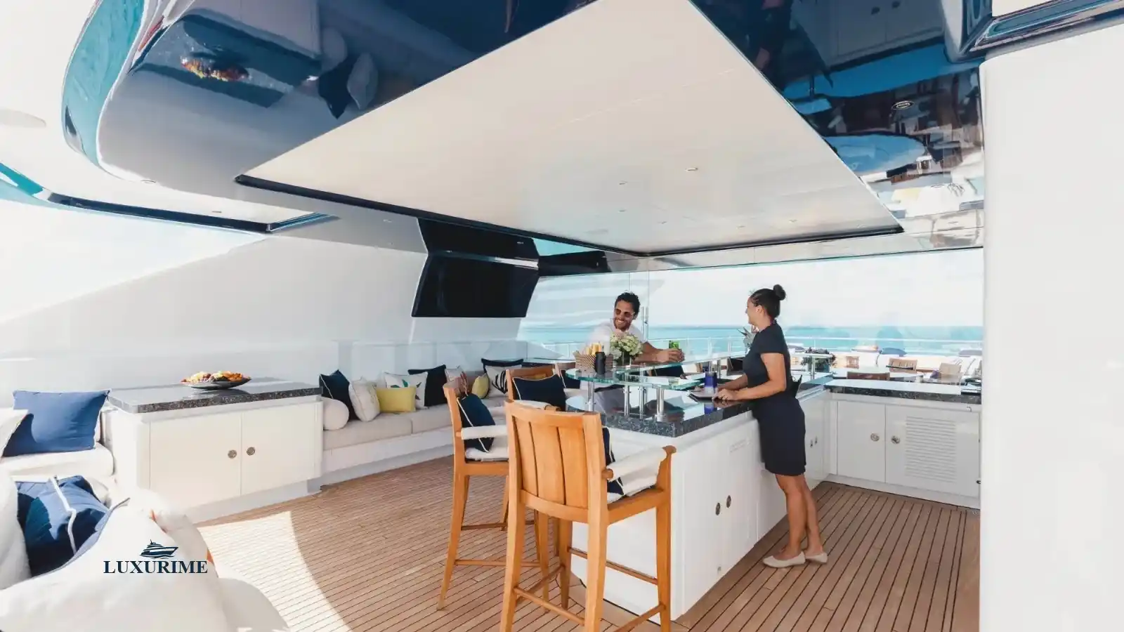 • Spacious Decks: Multiple relaxation areas, including sunbeds, alfresco dining, and a cozy lounge with a retractable awning